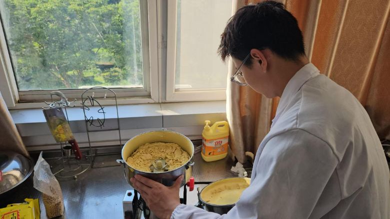 队员正在粉碎杂粮粥样品 周梦杰供图