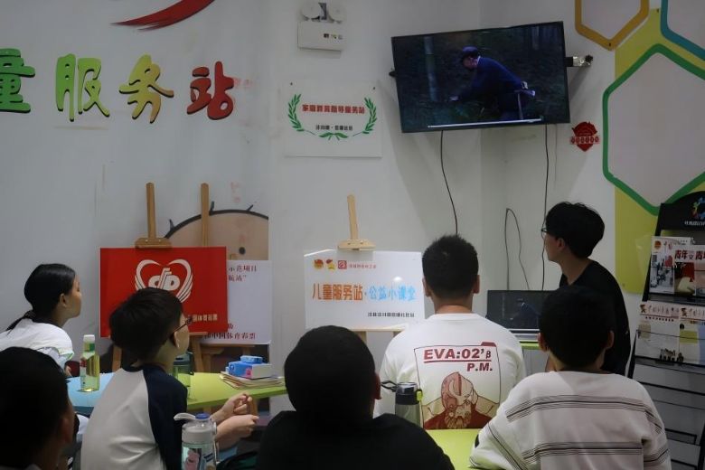 活动伊始,团队成员汪子浩带着对本土文化的热忱,向暑托班的小朋友们娓娓道来泾县油布伞的故事。作为安徽省非物质文化遗产,泾县油布伞以“伞骨取自当地竹子,伞面涂以天然桐油”的独特工艺闻名,承载着泾县人民世代相传的生活智慧与审美情趣。为了让孩子们更直观地感受这份传承,团队特意播放了纪录片《伞文诗》——镜头中,匠人专注打磨伞骨的身影、桐油涂刷后伞面泛起的温润光泽、雨天里油布伞下的烟火气息,都让孩子们看得入了神。