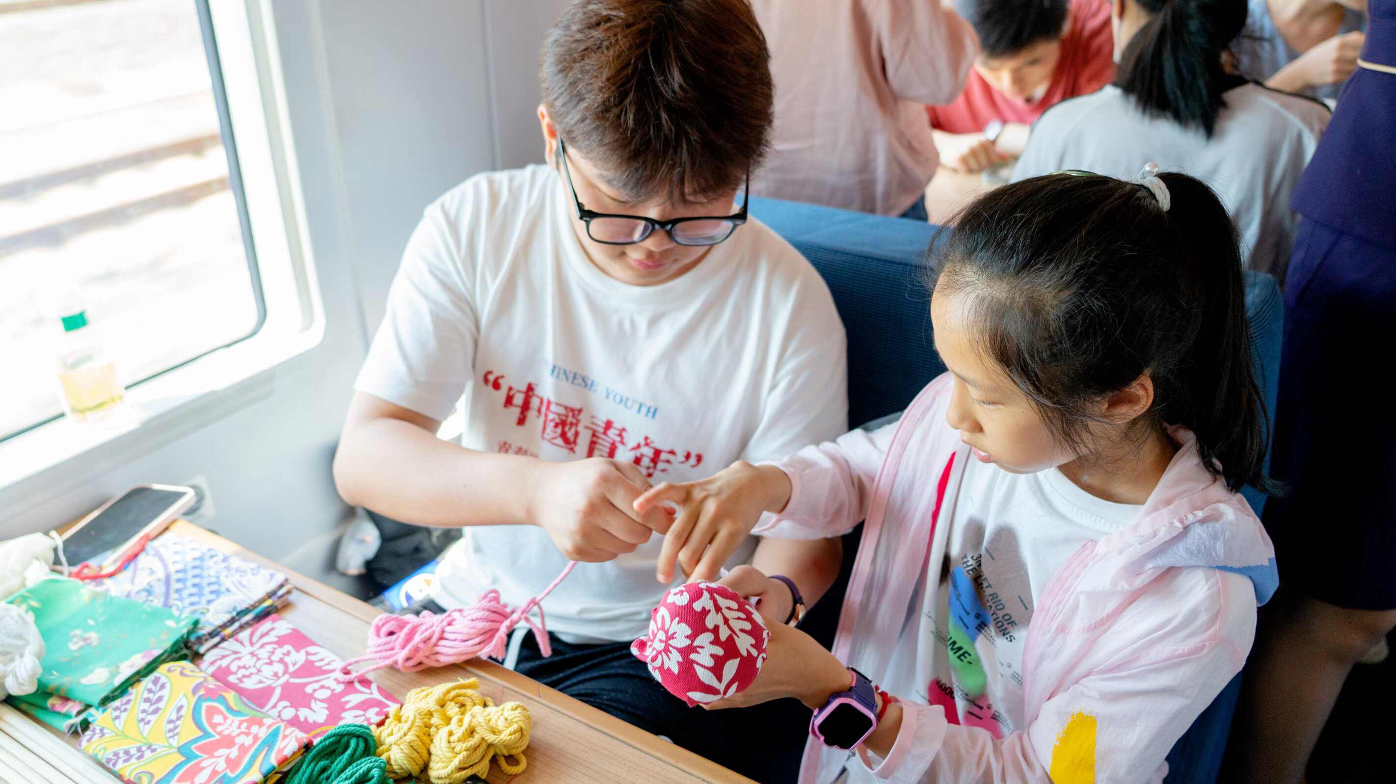 图为志愿者与乘客自制非遗艾草锤 刘妍嫣供图
