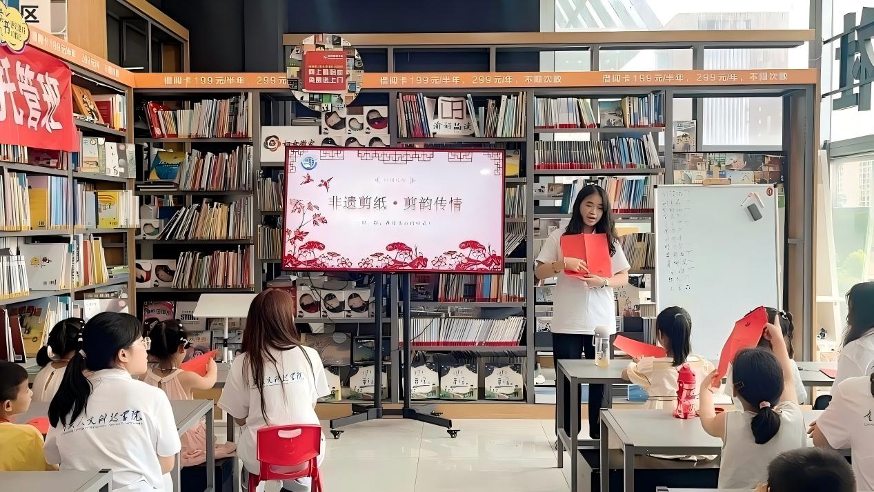 7月11日,铜梁区先知书社青少年之家暑期托管班内洋溢着浓厚的文化氛围,“铜梁龙韵,红色薪火”实践团在这里举办了一场主题为“剪影生花,传承匠心”的非遗剪纸主题活动。本次活动吸引了众多小朋友的积极参与,通过非遗文化知识课堂的形式,实践团成员们充分发挥学前教育专业优势,将剪纸这一传统技艺的魅力生动地展示出来,让孩子们在实践中感受非遗文化的浓厚底蕴,传承中华优秀传统文化。