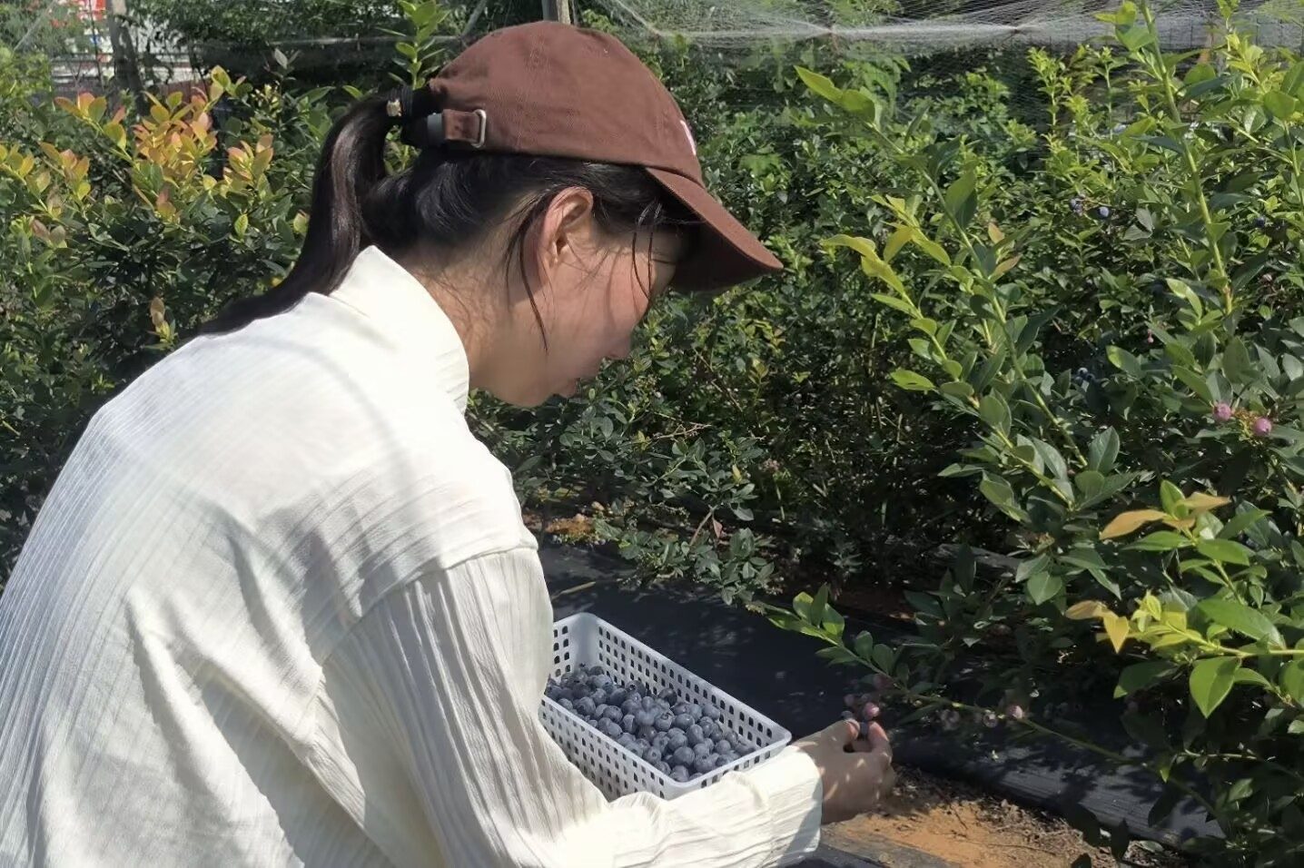 实践队成员深入蓝莓种植基地进行实地参观,协助基地员工开展采摘工作。基地负责人刘观天强调,保证怀宁蓝莓新鲜度和品质的关键是准确的采摘时机和规范的采摘手法:挑选色泽饱满的成熟果,采摘时动作要稳、准、轻。蓝莓园采摘员工遵循采摘标准,熟练地挑选成熟果实,将品质优良的蓝莓放入筐中。成员们在基员工指导下,手持果筐穿梭丛间,轻摘熟果、分类装盒,动作娴熟。实践小队队长符荷苗表示:“亲身体验采摘工作,才懂采摘工的不容易。我们不仅帮助基地减负,更在实践中收获了课本外的知识。”