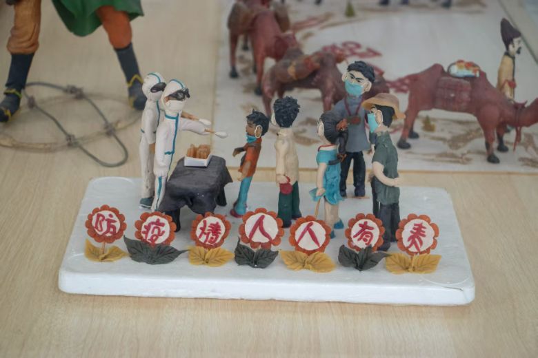图为实践团成员拍摄的以防疫为主题的面塑作品 吴沛洲摄