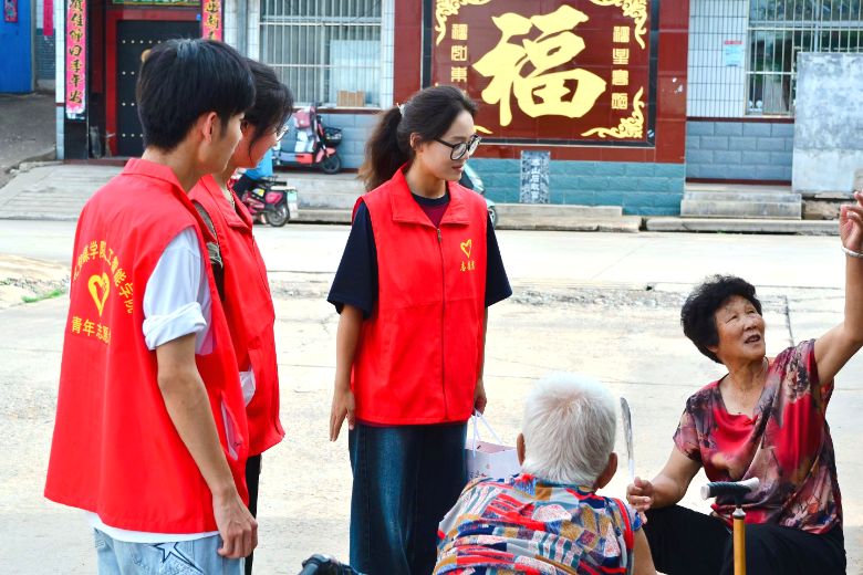 图为实践团成员在和南张村村长沟通参观面塑馆事宜 林昌厚摄