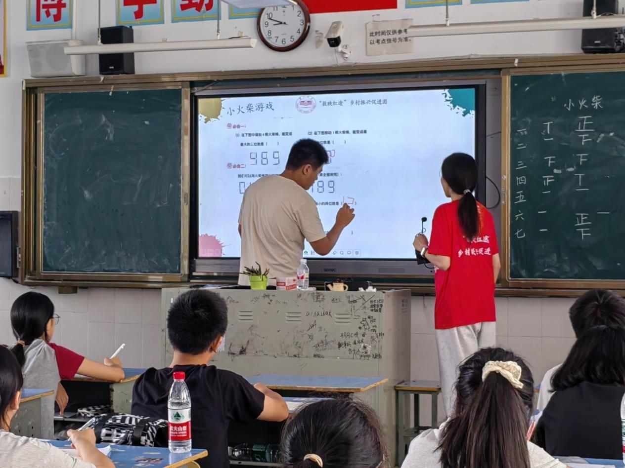 2025年7月10日,湖南第一师范学院“数映红途”乡村振兴促进团教学组成员唐单倩开展了以小火柴游戏为主题的趣味数学教学活动,通过移动、添加或移除火柴棒的益智游戏,让乡村孩子们在动手实践中感受数学魅力,提升逻辑思维能力。