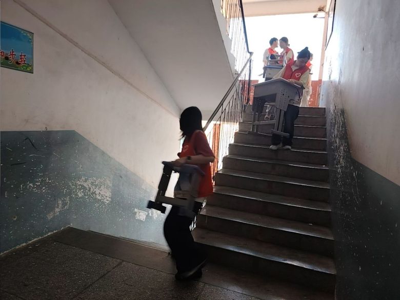 图为实践队员与校长协商教学安排。李慧通讯员摄抵达石鼓镇后,队员们迅速投入“战斗”。从采购物资、布置支教场地,到调试教学设备,事无巨细、亲力亲为。虽面临生活条件差异挑战,却以满腔热忱克服困难,用行动诠释支教担当,为开启教学篇章做好准备。