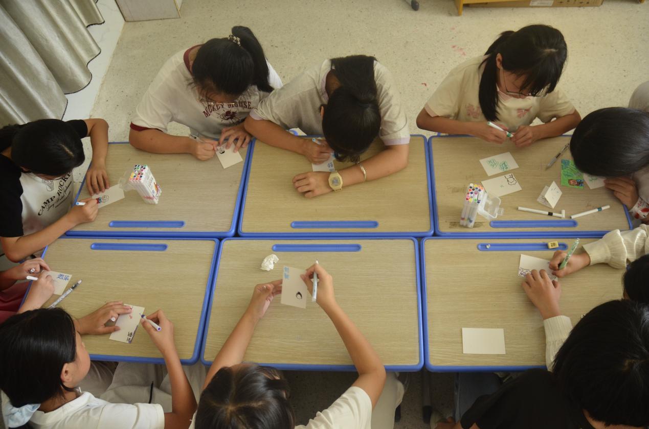 “一幅画笺载赤子心,方寸之间见报国志”,在实践队队员的指导下,学生动手绘制独具特色的嘉庚精神明信片。特色书签的创作让嘉庚先生“勤俭诚毅”的品质跃然纸上,成为学生珍藏的精神信物。