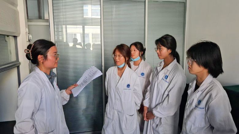 然后,马凤莲博士给我们讲解了凯氏定氮仪的工作原理、使用方法及注意事项,又找了一名同学模拟使用。