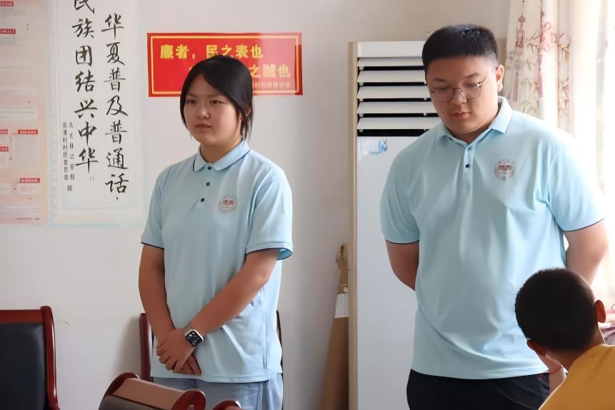 练习环节,孩子们排成两列,跟随口令由慢到快。一年级同学因手臂力量不足,侧平举时总是摇晃,刘雅萱便单膝蹲下,扶着她的手肘一点点抬高,直到坚持满八拍;五年级同学下蹲时膝盖内扣,刘佳毅用两根树枝做“轨道”,让他沿“轨道”上下,矫正姿势。烈日下,孩子们额头滚落汗珠,却无一人喊累。三遍完整练习后,全体同学能伴随音乐连贯完成六段操,掌声在田埂间久久回荡。
