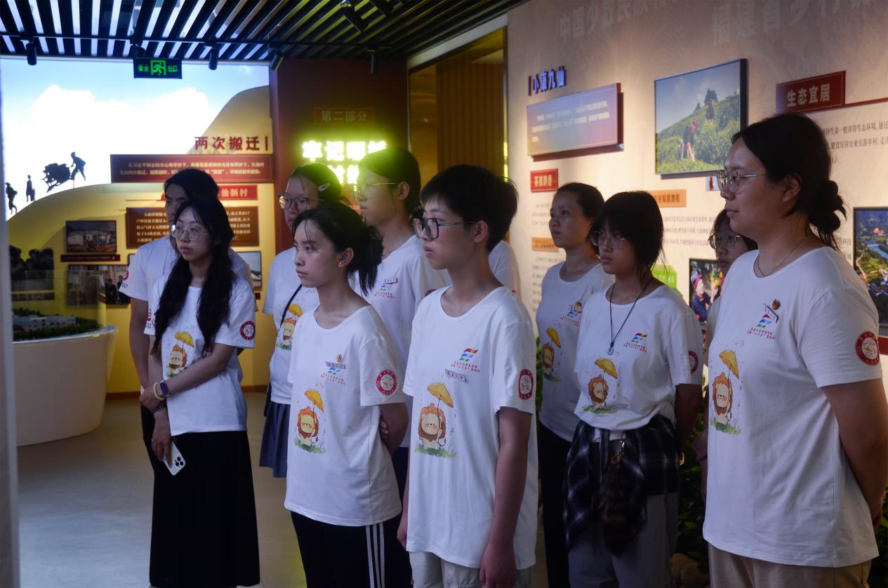 蕉城区九仙村乡村振兴实践点通过沉浸式全息影像模拟、小影厅纪录片播放、文物和实物双重史料展示、“乡村振兴”号列车九地市特色产业一览等方式全方位、立体化展现那段艰苦卓绝的峥嵘岁月。展馆内图文并茂地呈现了习近平总书记带领当地群众脱贫攻坚的生动实践,为队员们投身乡村科教振兴注入了强大精神动力。
