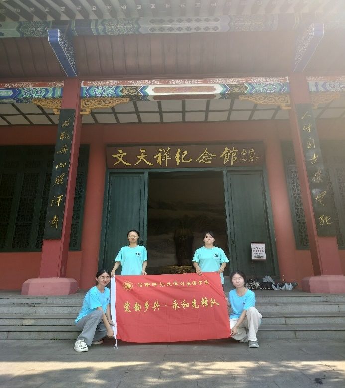 2025年7月8日,江西师范大学“瓷韵乡兴·永和先锋”实践队以将军公园的忠魂缅怀为起点,以文天祥纪念馆的丹心洗礼为深化,踏上了一段贯通古今的信仰淬炼之路。从革命烽火中的将星闪耀,到民族危亡时的正气之歌,队员们在这精神的双峰之间,探寻着融入血脉的忠诚与担当。