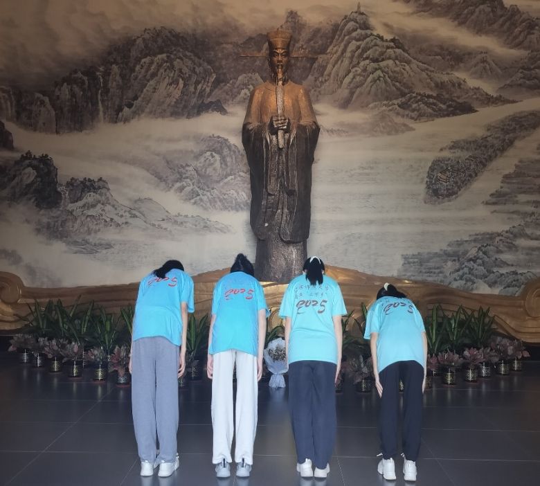 一进入纪念馆,高达九米的文天祥青铜塑像便赫然呈现于队员们眼前。身着南宋朝服的文天祥目光坚毅,仿佛能穿透八百年的时光,队员们不禁肃然起敬,垂首伫立。