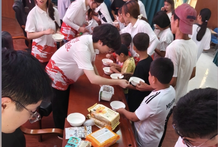 活动中,学院志愿者们先向村民们简单介绍了各类食材的特点和搭配小技巧,随后便引导大家根据自己的口味自主搭配,制作专属的酸奶甜品。村民们热情参与,有的将西瓜与哈密瓜混合加入酸奶,打造出果香四溢的清爽口感;有的则加入燕麦片和小熊饼干,让酸奶的绵密与食材的香脆相互融合,现场充满了欢声笑语。大家在挑选食材、混合搭配的过程中,不仅感受到了动手的快乐,还相互交流心得,气氛十分融洽。