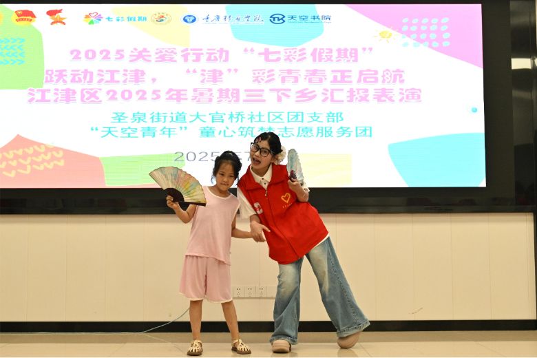 为深入贯彻党的二十大精神,关爱青少年健康成长,助力社区精神文明建设。7月11日,重庆移通学院“天空青年”童心筑梦志愿服务团在圣泉街道大官桥社区青年之家通过普法宣讲、非遗创作、文艺汇演等形式,为社区儿童打造了一场集教育性、趣味性、艺术性于一体的暑期盛宴,充分发挥青年志愿者积极作用,传递温暖与关怀,激发社区育人阵地活力。