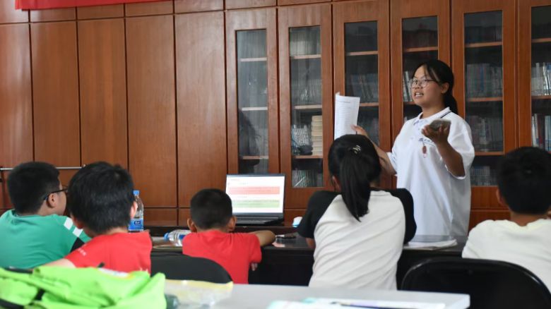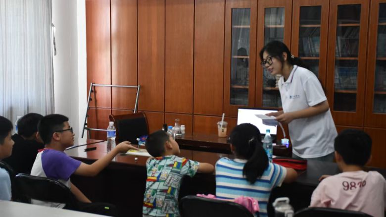 图为团队成员为小朋友们讲解心理知识 丁庆雨摄