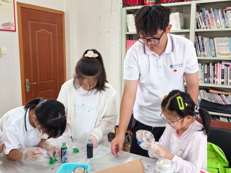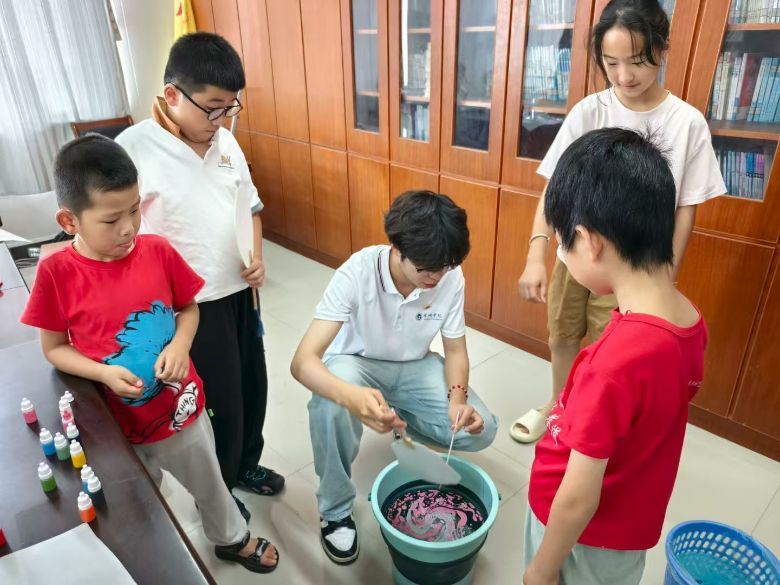 为丰富乡村儿童暑期生活,助力综合素质提升,7月7日—11日,巢湖学院化学与材料工程学院化韵传槐星火实践团赴槐林镇,开展“一院一镇一品”暑期三下乡社会实践。实践团以多元活动为乡村儿童打造成长新场景:课业帮扶时,志愿者化身“小老师”,用生活案例、趣味故事辅导作业,引导孩子主动学习;化学探秘中,“实验 + 科普”模式点燃科学热情,“神奇的色彩变化”“彩虹桥”等实验,结合生活实例解析原理,让知识直观可感;非遗传承里,“漆扇 + 扎染”双体验,讲述传承历史、指导创作,将非遗审美与乐趣植入孩子心间;素质拓展同步推进,心理讲座教孩子管理情绪,折纸飞机、合唱比赛、趣味运动会等,助力身心全面成长。此次实践,实践团以知识为桥,拓宽儿童视野、点燃兴趣,成员也体悟志愿价值。未来,团队将持续深耕乡村公益,用高校力量赋能儿童成长,让青春在乡村振兴中闪光,续写服务社会温暖篇章。