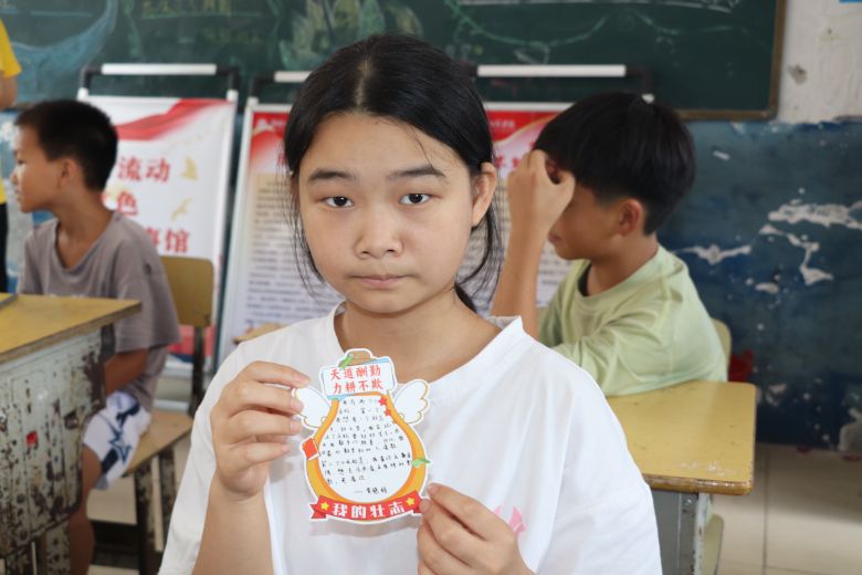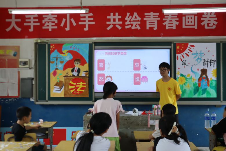 活动内容丰富多元。心理课堂上,志愿者通过情景模拟和互动练习,引导孩子们认识不同情绪、理解身体信号,学习接纳情绪并掌握深呼吸等调节方法,助力其成为“情绪的小主人”。励志课堂上,成员们分享自身成长经历,鼓励孩子们“读书不辍,展望未来,走出大山,看世界”,并引导大家写下梦想卡片,树立奋斗目标,每位小朋友的眼中都亮起了希望的光。团队还策划了“‘平凡之光’英雄故事会”,讲述身边普通人不平凡的事迹,传递“平凡铸就伟大,英雄来自人民”的理念,引导孩子们发现和学习身边的榜样力量。学生刘宇飞表示:“老师向我们展示的教师、护士、环卫工人的事迹,让我看到了他们的辛苦与伟大,我非常崇敬他们,今后我也会向他们学习,为社会做力所能及的事情”。