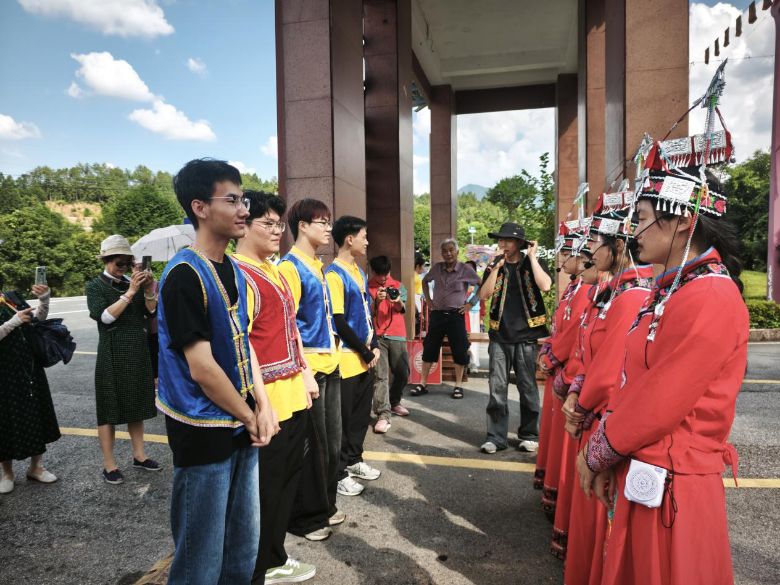 畲族婚俗承载着畲族人民对美好生活的向往,延续着古老而独特的文化传统,是畲族民俗文化的重要组成部分。成员们走进村寨,深入体验畲族别具一格的婚俗文化。在当地人的讲述与展示中,成员们详细了解到完整的畲族婚俗流程,认识了象征吉祥的凤凰嫁衣、寓意祝福的定亲信物。成员们有幸与当地村民共同模拟了婚礼环节,扮演迎亲队伍、伴郎等角色,亲身体验了拦路、对歌、“行嫁酒”等趣味十足的婚俗活动,真切感受到了畲族婚俗文化的浪漫。斟满米酒的雕花银碗、绣着凤凰纹样的红盖头,以及此起彼伏的山歌声,让大家沉浸式感受到畲族婚俗中蕴藏的浪漫情怀与文化底蕴。