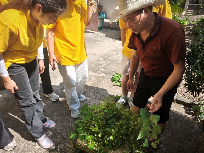 实践团成员来到新月村村长蓝启东家中拜访,蓝村长是畲族草药的非遗传承人。资溪当地自然资源丰富,生长着种类繁多的草药。村长对这些草药的特性、功效和使用方法了如指掌。成员们跟随蓝村长来到草药园里学习,园内分布着艾草、防风、紫苏草等几十余种药用植物。蓝村长向成员们介绍了各类草药的药性与功效,并结合实地教学,从植物形态特征、生态习性切入,系统讲解畲族草药的辨识方法。教学中,蓝村长还普及了中药“十八反”“十九畏”的配伍禁忌,为成员们阐释了传统医药的安全用药原则。成员们纷纷表示,此次学习打破了对传统草药的固有认知,认识到非遗医药文化中蕴含的严谨性与生命力。