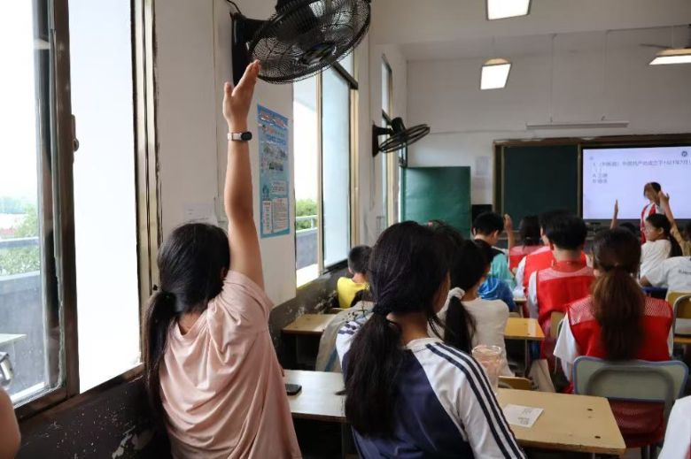 山枣中学学生们积极举手回答问题。 邓佳豪摄