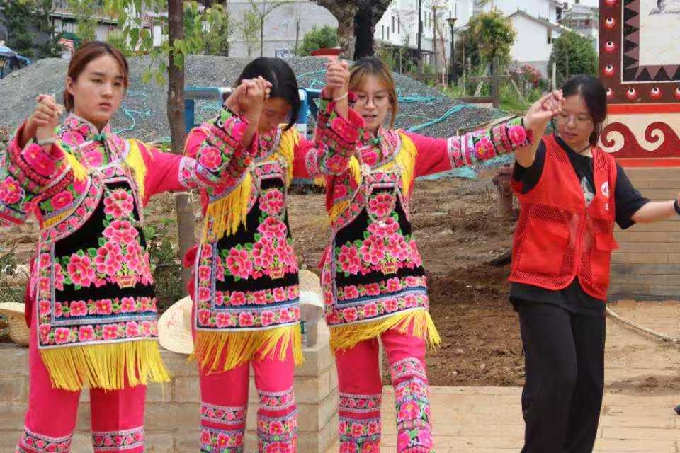 紧接着,队员们欣赏了精彩的彝族特色舞蹈表演。彝族姑娘们身着绚丽的民族服饰,伴随着欢快的音乐翩翩起舞。她们的舞姿优美动人,每一个动作都蕴含着彝族人民对生活的热爱和对美好未来的向往。队员们被这独特的文化魅力所感染,纷纷拿起手机记录下这难忘的瞬间。