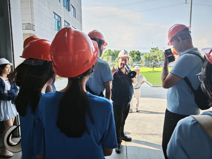 讲解结束后,团队采访人王若曦结合提前准备的采访稿,邀请企业技术负责人详细解答了成员有关产城融合的现状及期望,包括采访稿的预设问题及现场参观思考后的疑惑,成员更深入理解融合内涵,收获满满。