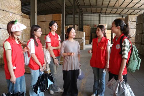 (图一:队员们探访绥宁县华南竹木加工厂)