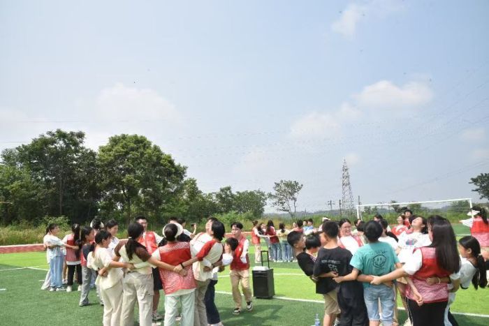在志愿者的引导下,孩子们通过游戏互相认识、建立默契,现场充满欢声笑语。在“相似圈”环节中,孩子们通过共同爱好找到志同道合的伙伴;“花开花落”游戏则考验了团队配合能力;“动力圈绳”游戏中,孩子们手拉绳索围成大圈,在志愿者指导下共同完成各种动作挑战,既锻炼了团队协作能力,又增强了彼此信任。活动过程中,志愿者们特别关注性格内向的学生,耐心引导他们参与互动,确保每个孩子都能感受到集体的温暖。