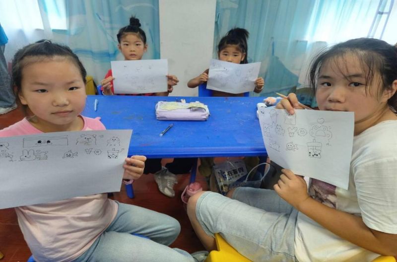 艺术的种子也在社区悄然发芽。在“童心绘世界”绘画活动中,孩子们拿起五彩画笔,描绘心中的美好世界。有的画可爱的卡通人物,有的画自己想象中的东西。活动现场,志愿者耐心指导,鼓励孩子们大胆创作。当一幅幅充满童真与创意的作品完成时,孩子们脸上洋溢着自豪的笑容。随后,老师将画展在教室墙面,一幅幅充满童真的画作像绽放的花朵般次第铺开,引得大家相互欣赏。