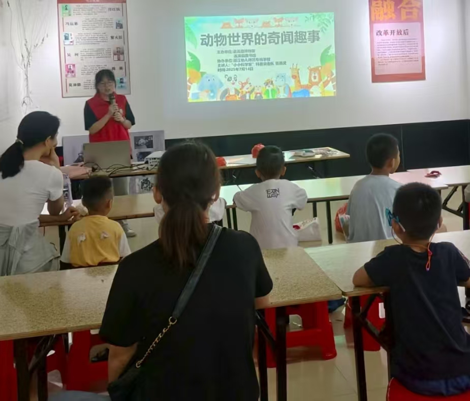 7月14日上午,湛江幼儿师范专科学校携手遂溪县博物馆,于博物馆内开启“暑光宝盒,科学盲盒”暑期科普系列活动第七期——动物世界的奇闻趣事。本次活动介绍动物之最、本领等知识趣事,助小朋友了解动物、学会保护,再通过折纸小动物,唤起对动物世界的美好向往。