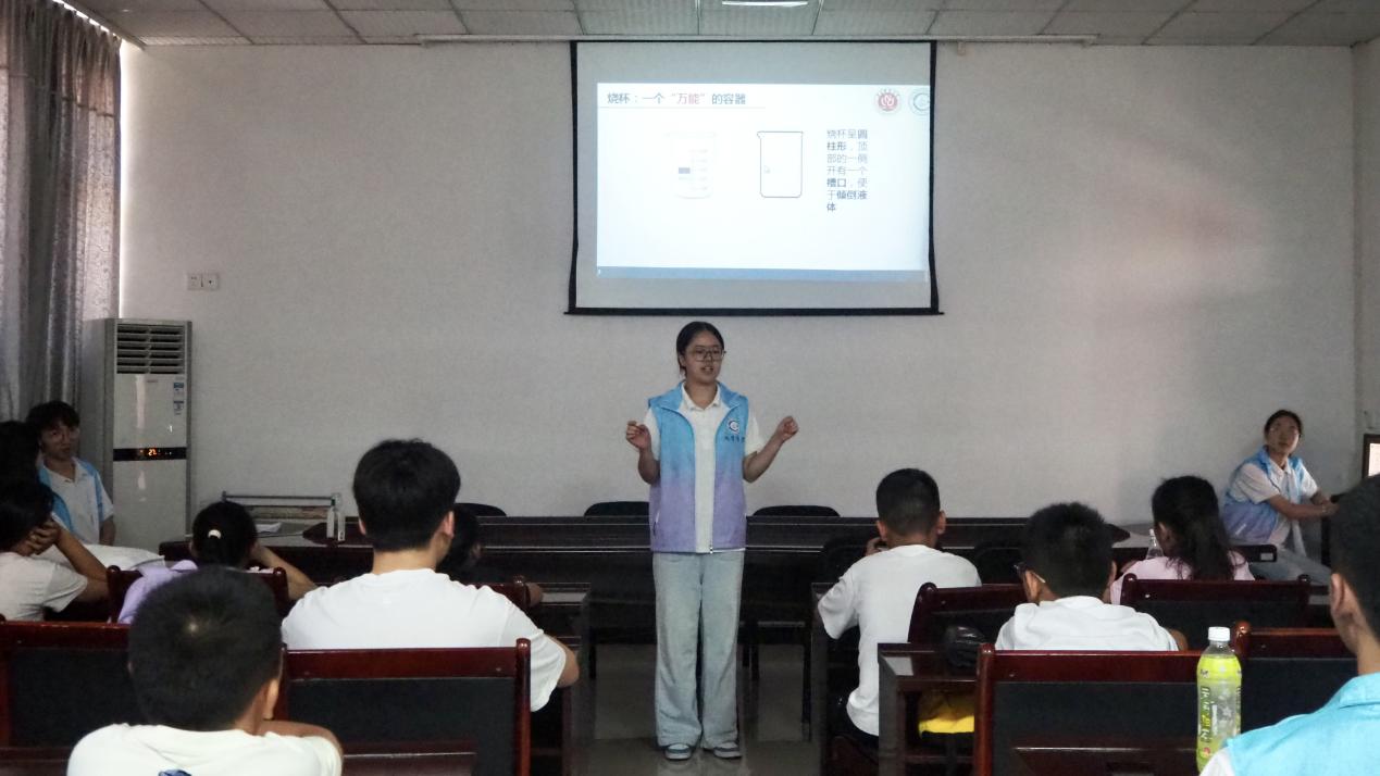 图为实践团成员讲解化学实验仪器安全吴思逸摄