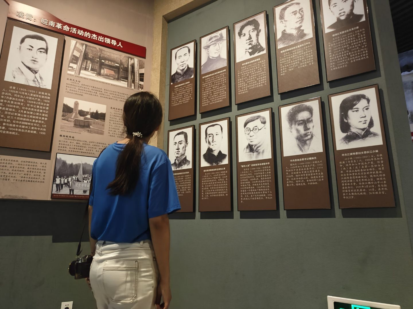 实践团怀着再度访问安徽革命烈士纪念馆,此次行程的目的为参观馆内藏品了解人物事迹及以及参与纪念馆104周年的建党活动。馆内多名小讲解员绘声绘色的讲述革命那些事,不禁令人为之动容,也存在着揪心的时刻。馆内陈列的先辈遗物栩栩如生的反映了蜀山地区革命斗争的艰苦历程,革命人士以安徽本地人为主,从早期党组织的建立到解放战争,实践团的每位同学感同身受,在参观的同时,实践团进行了采访,采访的对象有小讲解员、大学生、公司职员等。馆内藏品所现的是斑驳的历史,锈迹满满的刀枪,血色浸染的布衫,嚣张跋扈的日军画报,惟妙惟肖的雕塑,借此藏品,实践团脑海已然再现当年的艰难奋斗史,一波三折,打的日军节节溃败,实践团成员静静驻足于藏品前,内心的酸涩与苦楚难以下咽,感慨革命烈士的坚贞不屈与为中华之崛起而奋斗的顽强意志。此次参观坚定了实践团传承革命薪火,赓续红色血脉的决心,也使得成员内心红色血脉的进一步觉醒以及为社会主义奋斗终身想法的肯定。