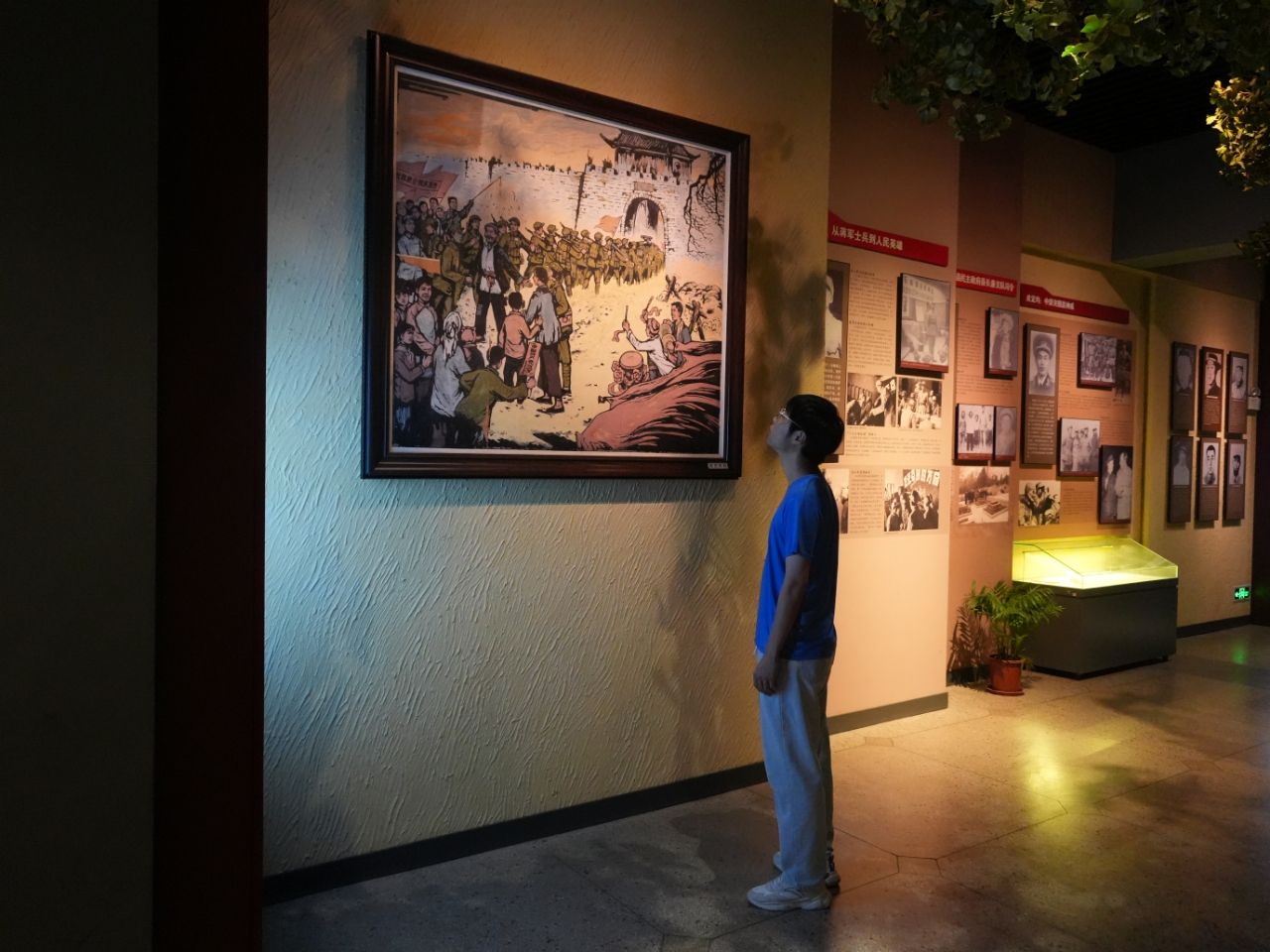 图为团队成员驻足观看革命事迹漫画 凌文韬 供图