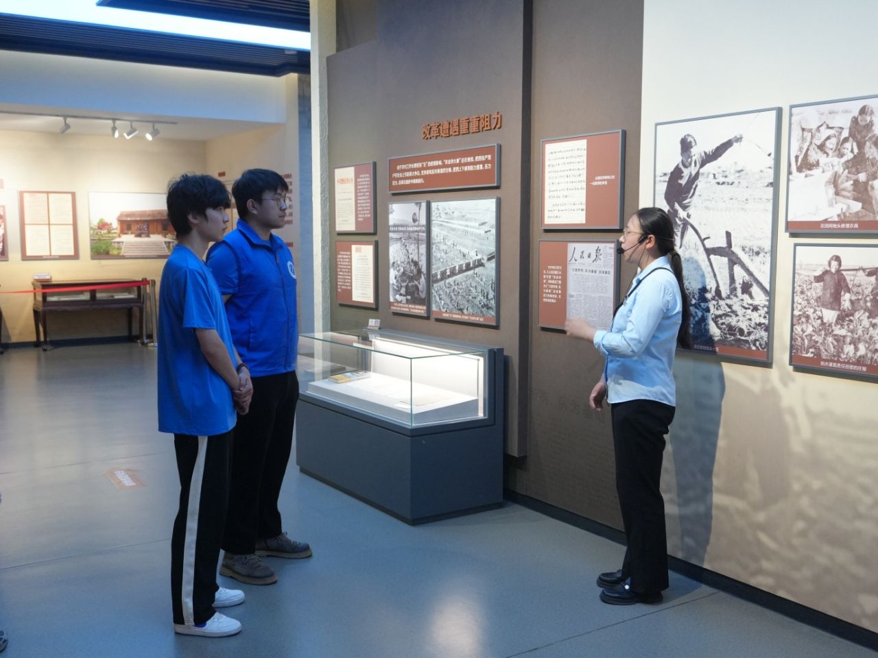 “红色,是中国共产党和中华人民共和国最鲜亮的底色。在新时代,弘扬红色文化不仅是铭记历史的需要,更是激励我们砥砺前行的精神动力。”实践团来到了小井庄“中国农村包产到户纪念馆”,跟随讲解员的脚步,实践团了解到包产到户这一创新制度背后的艰辛。见证了安徽肥西县包干制的起源与发展,从面临困境到如今百强县第36的位次,实践团参观了万里同志的故居,住的是下雨时渗水的泥土房。随后,实践团跟随村民的步伐进入了田间地头,彼时盛夏,田间里生机勃勃,村民热情好客,向实践团介绍了当地的风俗习惯等。站在田间地头,实践团使用无人机,记录下此时的欣欣向荣。