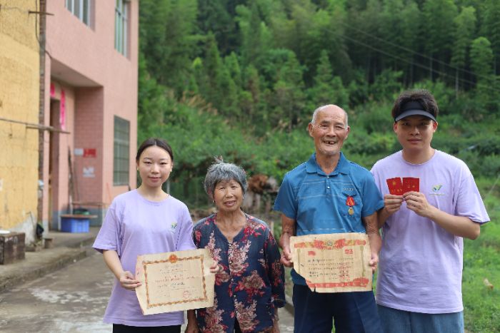 78岁的老党员邹房发,这位有着53年党龄的原村干部,曾带领村民在374亩田地上辛勤耕耘三十载。85岁的孟宪金老人,是一位精通技术的能人,他曾为保障全村唯一碾米厂的运转日夜操劳,甚至因工伤导致腿部瘫痪。83岁的空降兵老兵孟普生向志愿者们讲述了当年从400米高空跃出热气球训练的惊险,以及执行任务的经历。82岁的侦察兵老英雄张杨辉,抚摸着“五好战士”“神枪手”证书和援越抗美勋章,回忆着战场上的残酷,那被炮弹震聋的耳朵,成为他永不褪色的军功章。在容易被人遗忘的乡间,文旅组“艺青年”用镜头记录着参与新中国建设奋斗历程的、平凡而又伟大的实践者们。