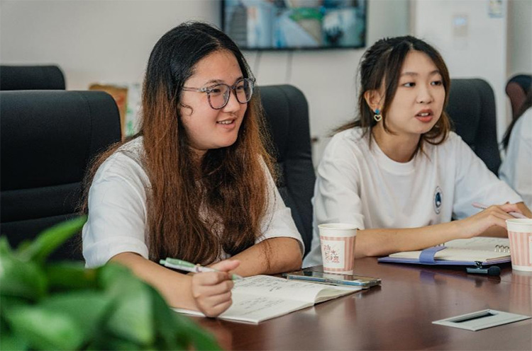 图为成员聆听周建平书记对石塔村的介绍 李欣宇 摄