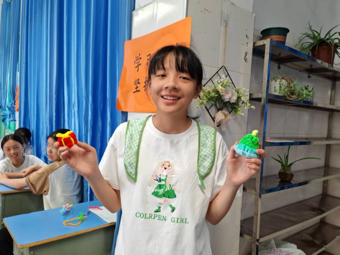 情感联结:留守儿童将手环作品寄给外地务工父母,扭棒接头处的蝴蝶结被命名为“思念结”。