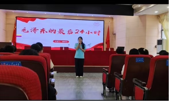活动现场,宣讲组成员凭借丰富的历史资料和生动的讲述方式,将毛泽东的一生立体地呈现在师生面前。从毛泽东年少立志走出韶山求学,发出“孩儿立志出乡关,学不成名誓不还”的豪言壮语,到他在湖南第一师范学院刻苦学习、积极投身学生运动,逐步树立起救国救民的伟大理想;从领导秋收起义,开辟井冈山革命根据地,走出一条“农村包围城市、武装夺取政权”的独特革命道路,到带领中国人民经过长期的革命斗争,赢得民族独立和人民解放,建立了新中国,每一个阶段的故事都深深打动了在场的听众。