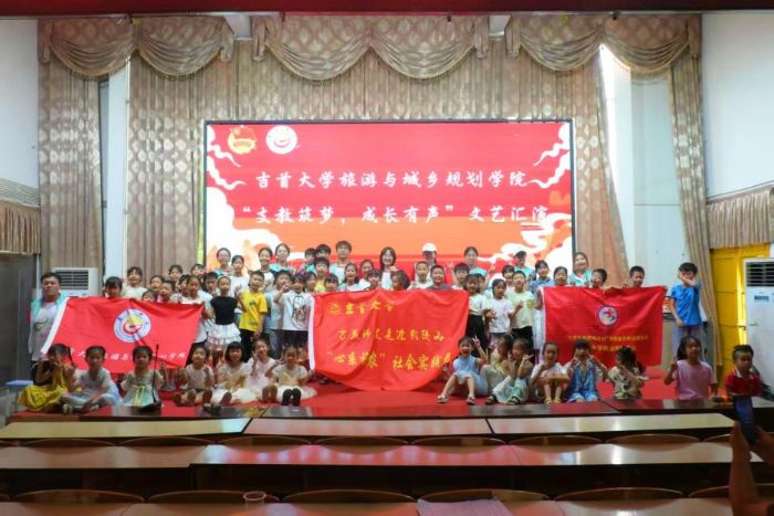 本网讯(通讯员李幸萱 伍鑫 张可钦 张嘉兴)7月14日,吉首大学旅游与城乡规划学院“心系旅农”社会实践团为期11天的支教活动在精彩的汇报展演中圆满收官。