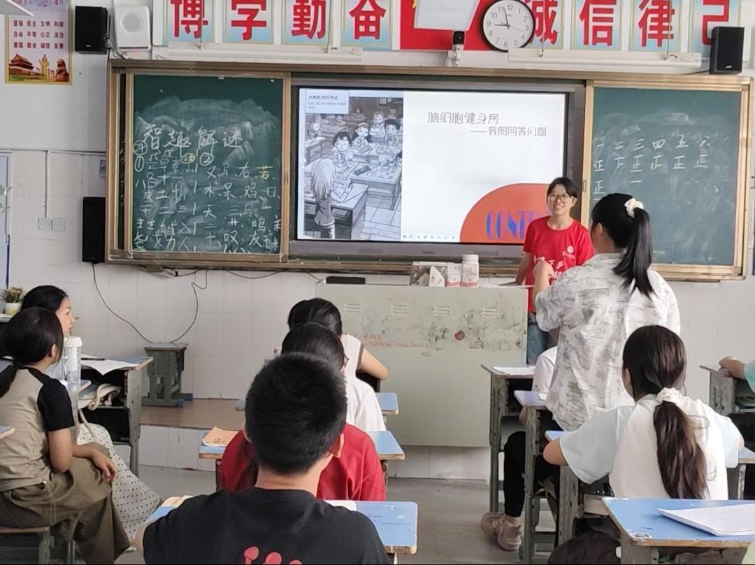 2025年7月12日,湖南第一师范学院“数映红途”乡村振兴促进团教学组成员邓婕老师为乡村孩子们带来了一堂别开生面的“智趣解谜”课。课堂以数字谜语、脑筋急转弯、字中找字、视觉追踪等丰富形式,让孩子们在欢乐互动中锻炼思维能力,感受解谜的独特魅力。