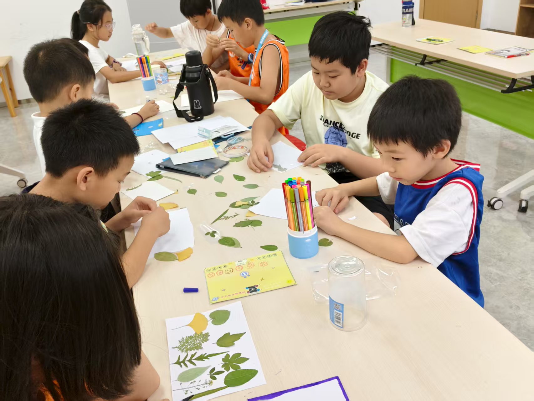 课程最后,授课老师引导小朋友一起回顾今天的课程,对今日所学的自然知识和美育知识进行巩固,一位小朋友还认真地说:“我要告诉妈妈,这片叶子是香樟的,能驱蚊!”课堂在一片欢声笑语和满满的成就感中圆满结束。
