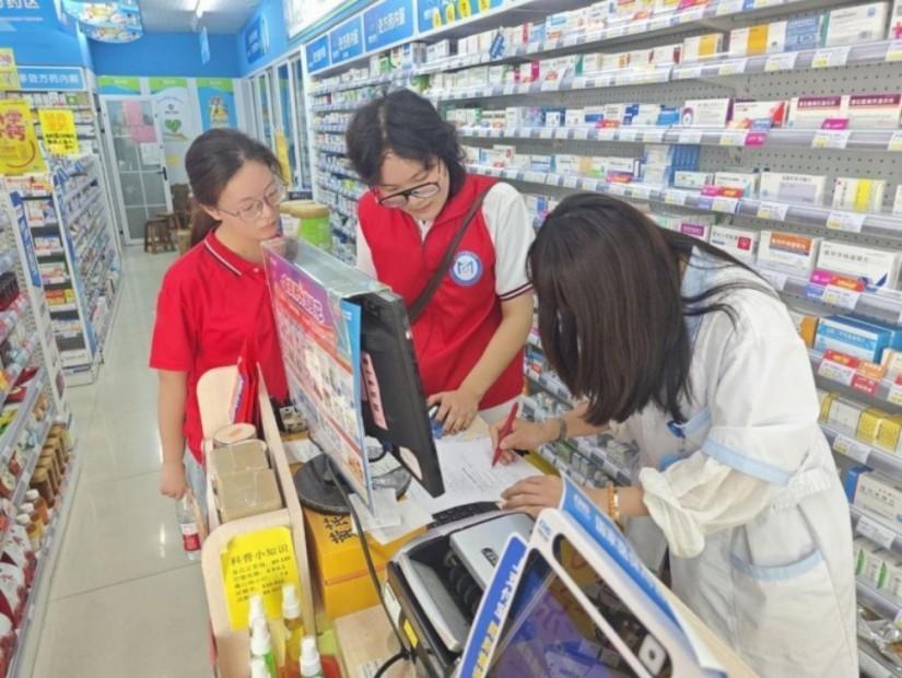 图为团队成员在社区药店调研,了解药店与无偿献血相关的药品供应等情况。张翔宇摄