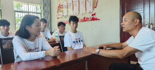 (图3)老师为同学讲解康都会议 (图4)与村支书座谈交流