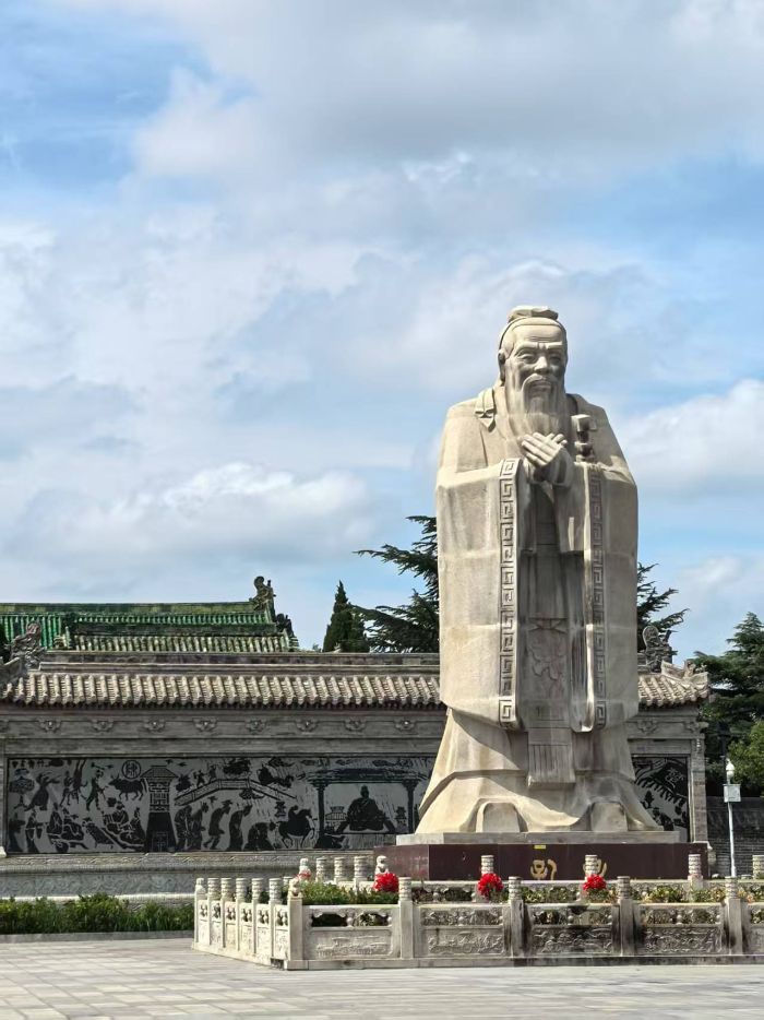 (左图为淮阳弦歌台孔子雕像 詹琛摄)