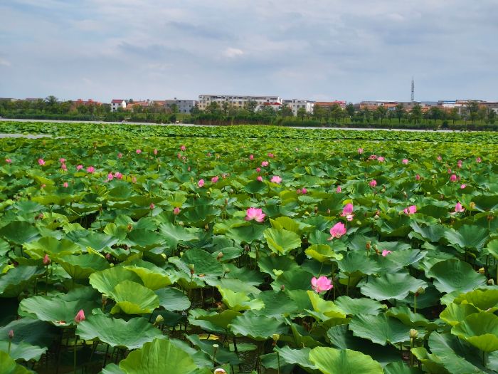 (图为淮阳龙湖万里荷花盛开之景牛占原摄)