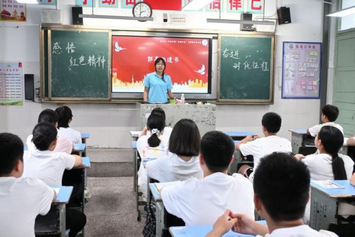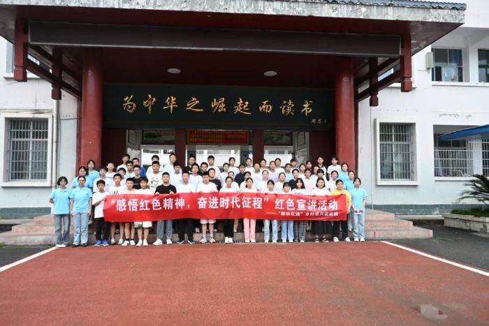 (通讯员 潘超红 刘林杰 谭凌霞)2025年7月9日,湖南第一师范学院“数映红途”乡村振兴促进团在古丈县民族中学开展了一场以“感悟红色精神奋进时代征程”为主题的红色宣讲活动,共同聆听那段波澜壮阔的革命历史,感悟先辈们的崇高信仰与坚定信念。