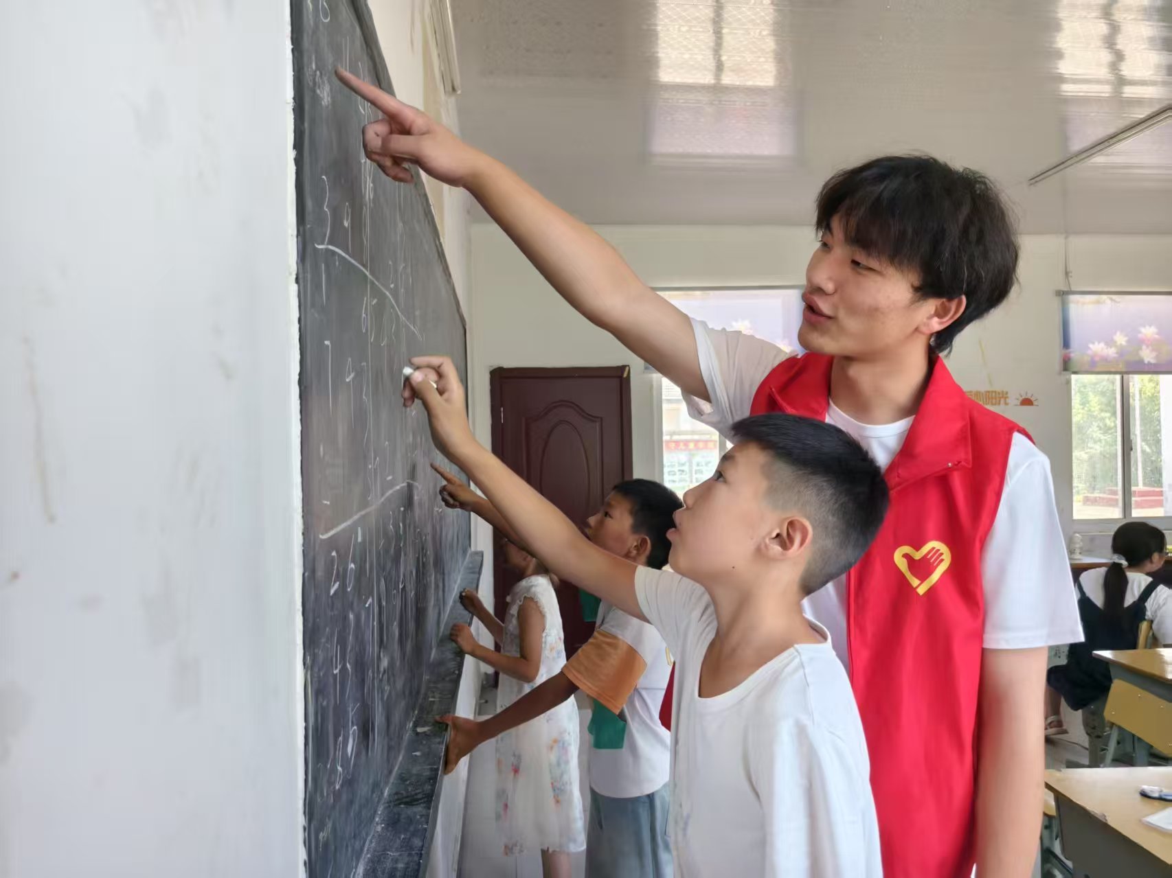 活动当天,巢湖学院机械工程学院的志愿者们身着红色马甲,化身孩子们的“小老师”。志愿者汤媛媛围绕防溺水安全知识,通过生动讲解与互动问答,让孩子们掌握防溺水注意事项和安全措施,为他们筑牢生命安全防线。志愿者时永乐则带来精彩的课程辅导,以互动探讨的方式激发孩子们对数学的兴趣,引导他们在交流与思考中攻克难题。