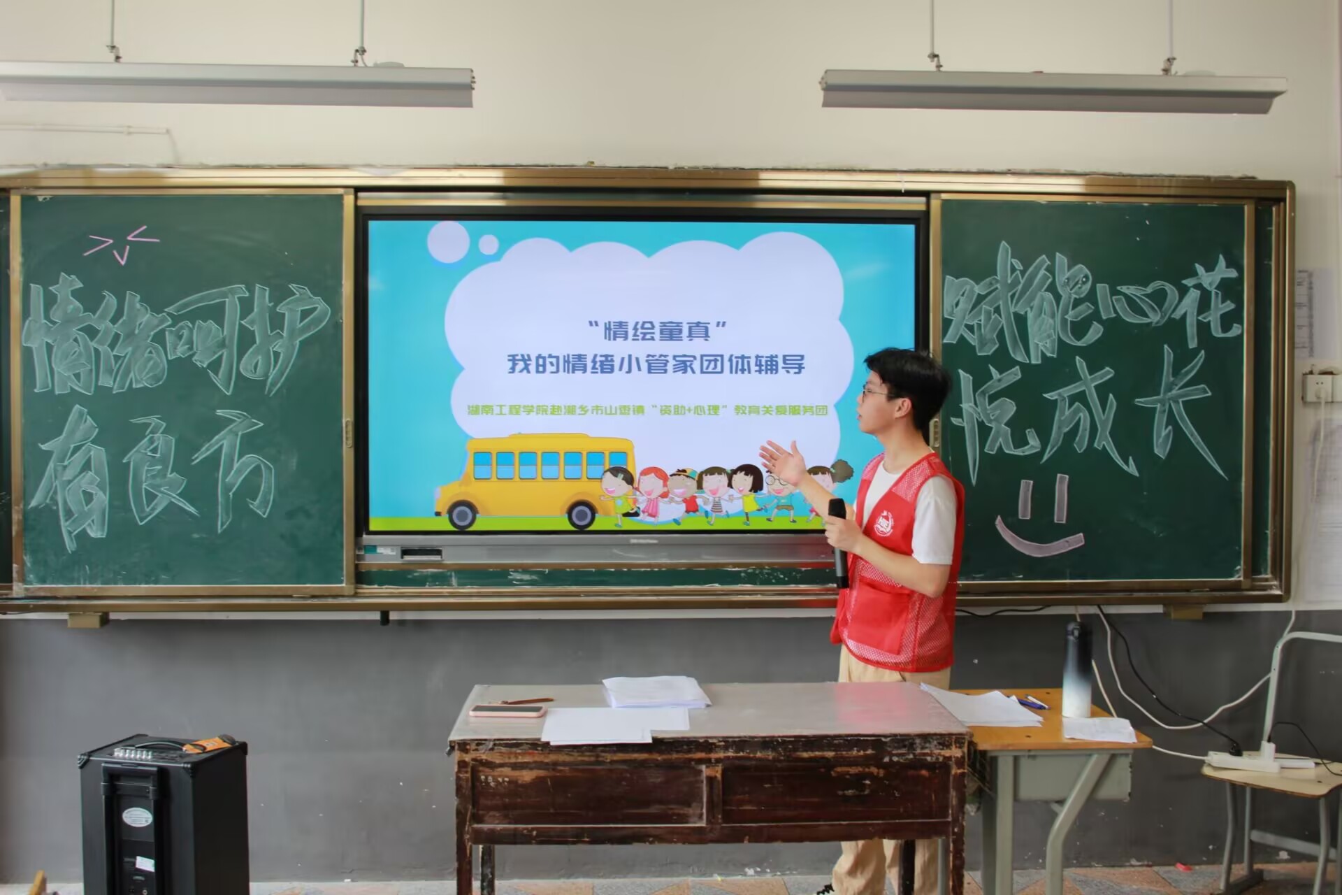 7月11日,湖南工程学院赴湘乡市山枣镇教育关爱服务团在山枣中学开展“情绘童心”情绪管理团体心理辅导,通过趣味互动帮助乡村儿童学习情绪管理,增强心理调节能力。
