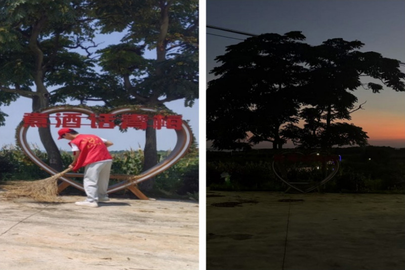 (图为队员打扫青梅基地照片)