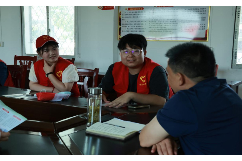(图为团员在与村民进行访谈)