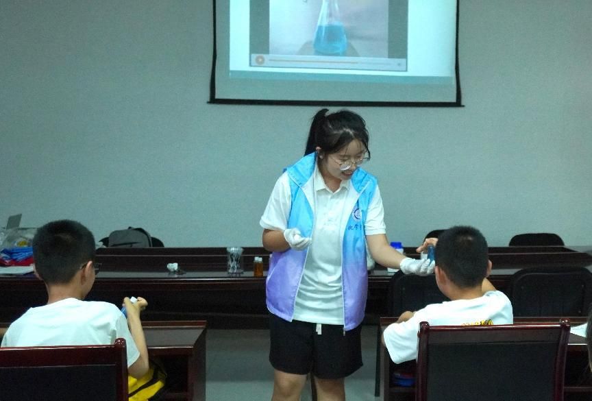 在“蓝境流转”的实验台前,好奇的目光被五彩斑斓的现象深深吸引。志愿者细致讲解实验药品特性,强调安全规范,引导孩子们辨识不同颜色瓶盖背后的“秘密语言”。当亲手操作让溶液在眼前奇妙变幻,孩子们发出阵阵惊叹。实验不再囿于课本抽象符号,而是成为可触碰、可创造的生动现实。这份“流转”的魔力,正是三下乡的宗旨“受教育、长才干、作贡献”的体现,也是叩响科学大门的钥匙,让探索的目光从此投向更广阔的生活奇景。